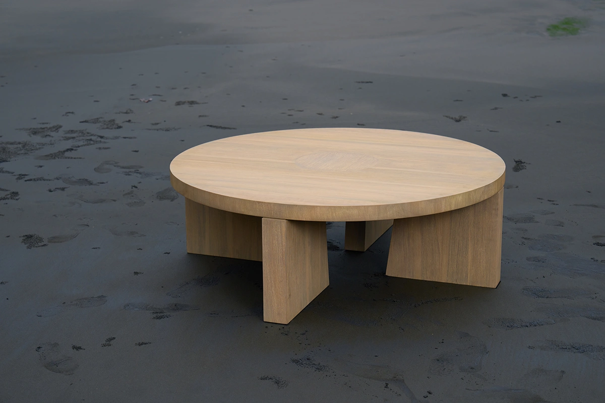 Constructed from solid, sustainably sourced teak, this coffee table combines natural warmth with understated elegance. Its simple silhouette and smooth, refined surfaces make it a versatile centrepiece that complements any outdoor furniture arrangement